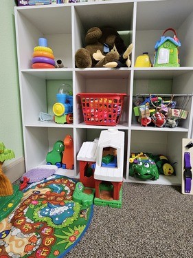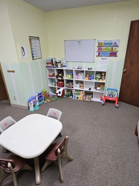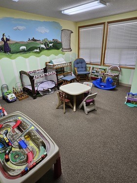 We have a nursery available for the little ones ages birth to two years old. There are a lot of books and toys to explore in a safe and loving environment.